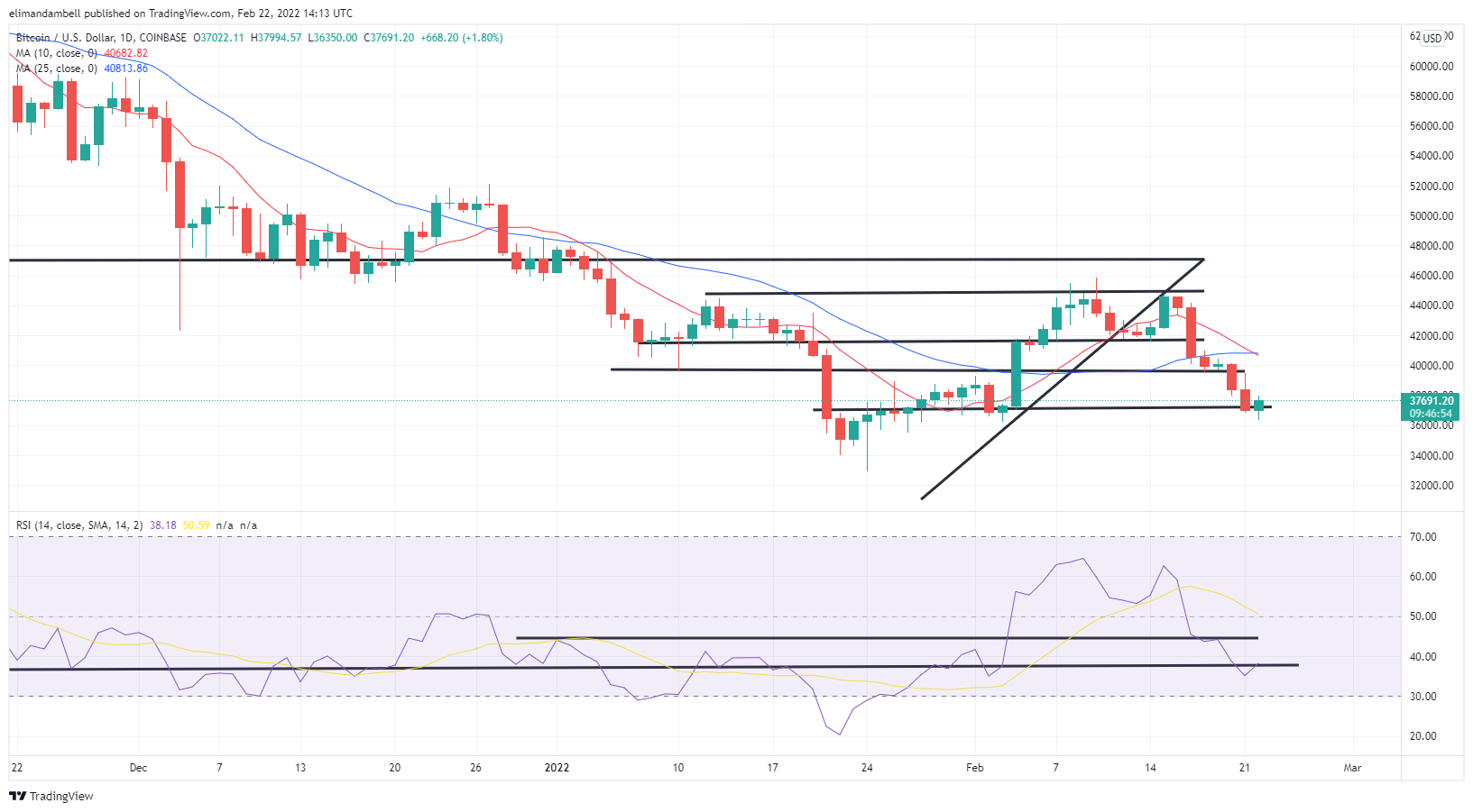 The selloff in BTC momentarily eased on Tuesday, as global markets continued to closely monitor the Russia/Ukraine situation.