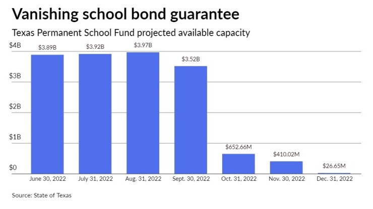 Amid a slew of school debt approved by voters last year, the Permanent School Fund program has experienced high demand that shrank its projected available capacity from $3.97 billion at the end of August to $410 million on Nov. 30.