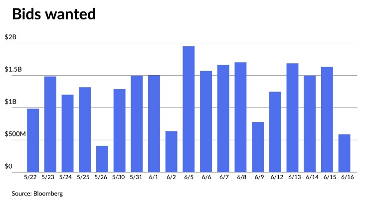 Clients put up around $7.88 billion for the bid last week versus the $7.65 billion put up for bid the week prior, he said.