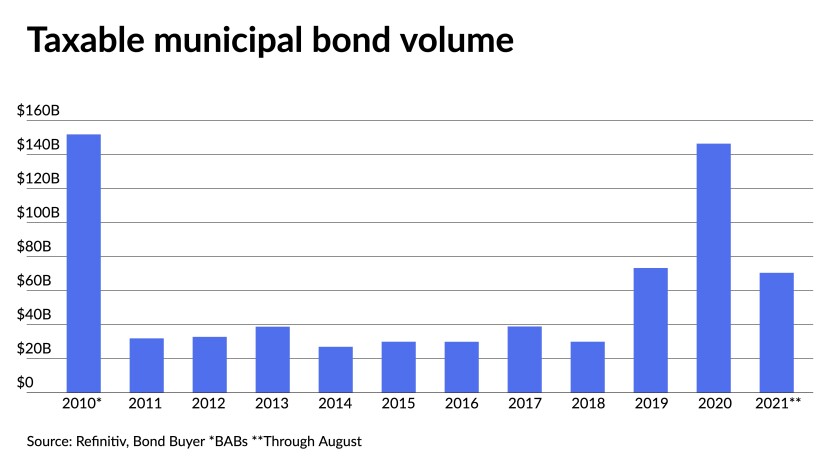 The return of tax-exempt advanced refundings may also alter the taxable bond landscape, which is already down in 2021 compared to 2020, he and other participants pointed out.
