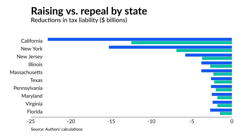 “Taxpayers in high tax states including California and several states in the northeast were most affected by the cap, particularly those in upper income ranges and they would benefit most from full cap repeal,” the report said. “If Congress raises the cap to $80,000 as currently is being discussed, high income taxpayers in high-tax states would benefit the most, but relatively less than they would benefit from full cap repeal.”