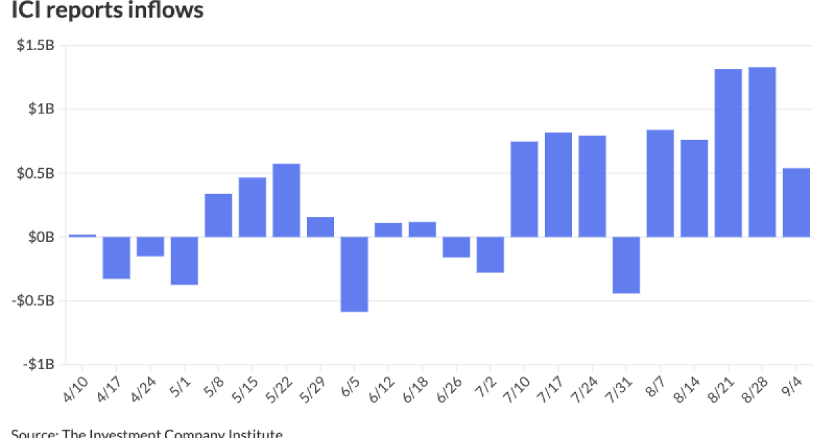 The Investment Company Institute reported $539 million of inflows into municipal bond mutual funds for the week ending Sept. 4 after $1.33 billion of inflows the week prior. Exchange-traded funds saw $212 million of inflows after $667 million of inflows the previous week.